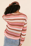 Brown Striped Open Knit Sweater